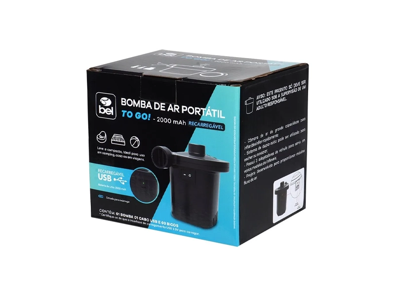 A Bomba de Ar Portátil To Go! da Bel é a solução ideal para quem busca agilidade na hora de inflar ou esvaziar objetos como boias, colchões infláveis e muito mais. Compacta, leve e fácil de transportar, ela acompanha você em qualquer lugar.