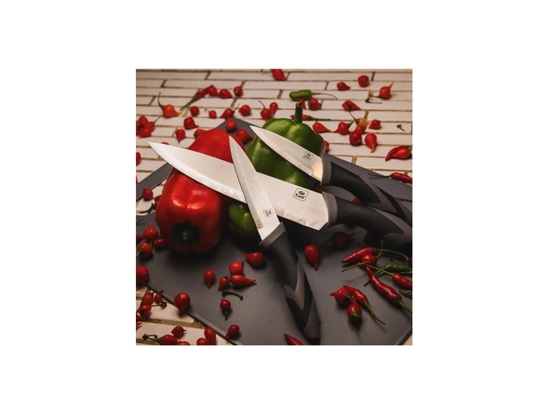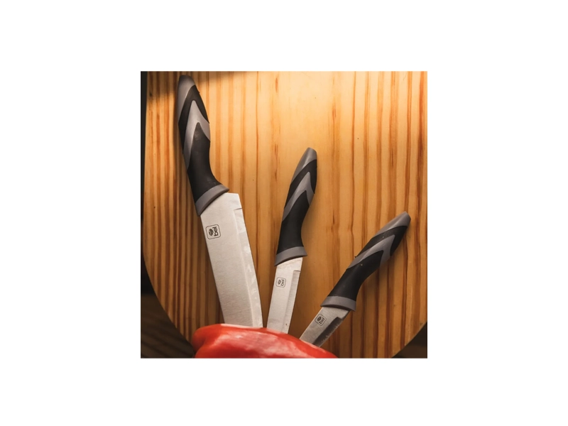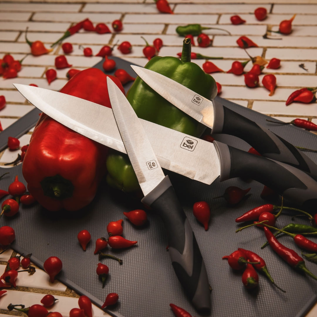 Sobre o ProdutoTabua de Carne e Legumes com 3 Facas BelTorne o preparo de carnes, legumes e verduras muito mais prático com o Kit Tábua e Facas da Bel! Um conjunto versátil, moderno e resistente, ideal para o dia a dia. O kit contém: ✔️ 3 Facas em aço inoxidável, com tamanhos diferentes para cortar com precisão: